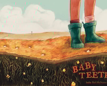 Baby Teeth is a 64-page Midwestern Gothic fairytale picture-book dummy. It follows twelve-year-old Luisa, who has grown unhappy with the many changes in her life. Leaving her old home behind, Luisa and her mother start anew in an isolated rural town. Strange teeth and a mysterious creature begin to appear as she grapples with her fears of growing up.
