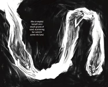The Melancholy Queen is a 24-page zine and visual poem. It is an exploration of depression and the desire to rid oneself of such a burden.